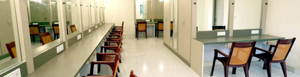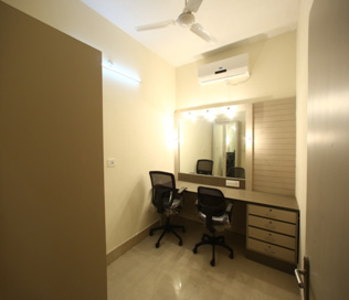 - Single seater with attached restroom and a wardrobe. ( For senior artists)